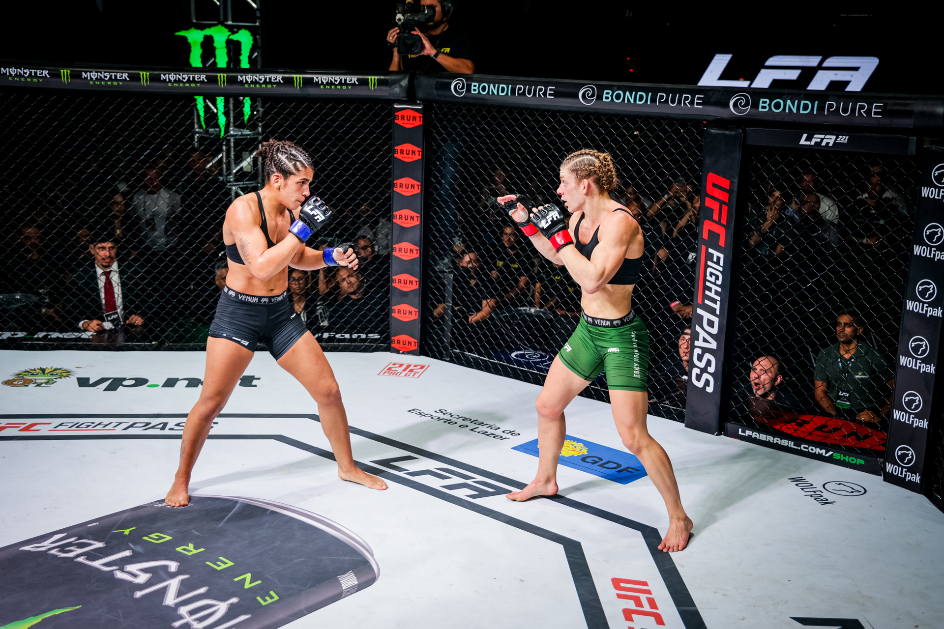 In the main event of the evening, Canada’s Shannon Clark made her way down to South America to defend her LFA Flyweight Title belt for the second time as she took on an undefeated Bia Consuli who was making her first appearance on an LFA Main Card and fighting in her home country. Although Clark was the favorite on paper, Consuli made sure actions spoke louder than words as she kept things close through five grueling rounds between the two fighters. In the end, it was the champion who came out on top as the judges all favored the Alberta native. Clark retained the flyweight title and took her record to 7-1.