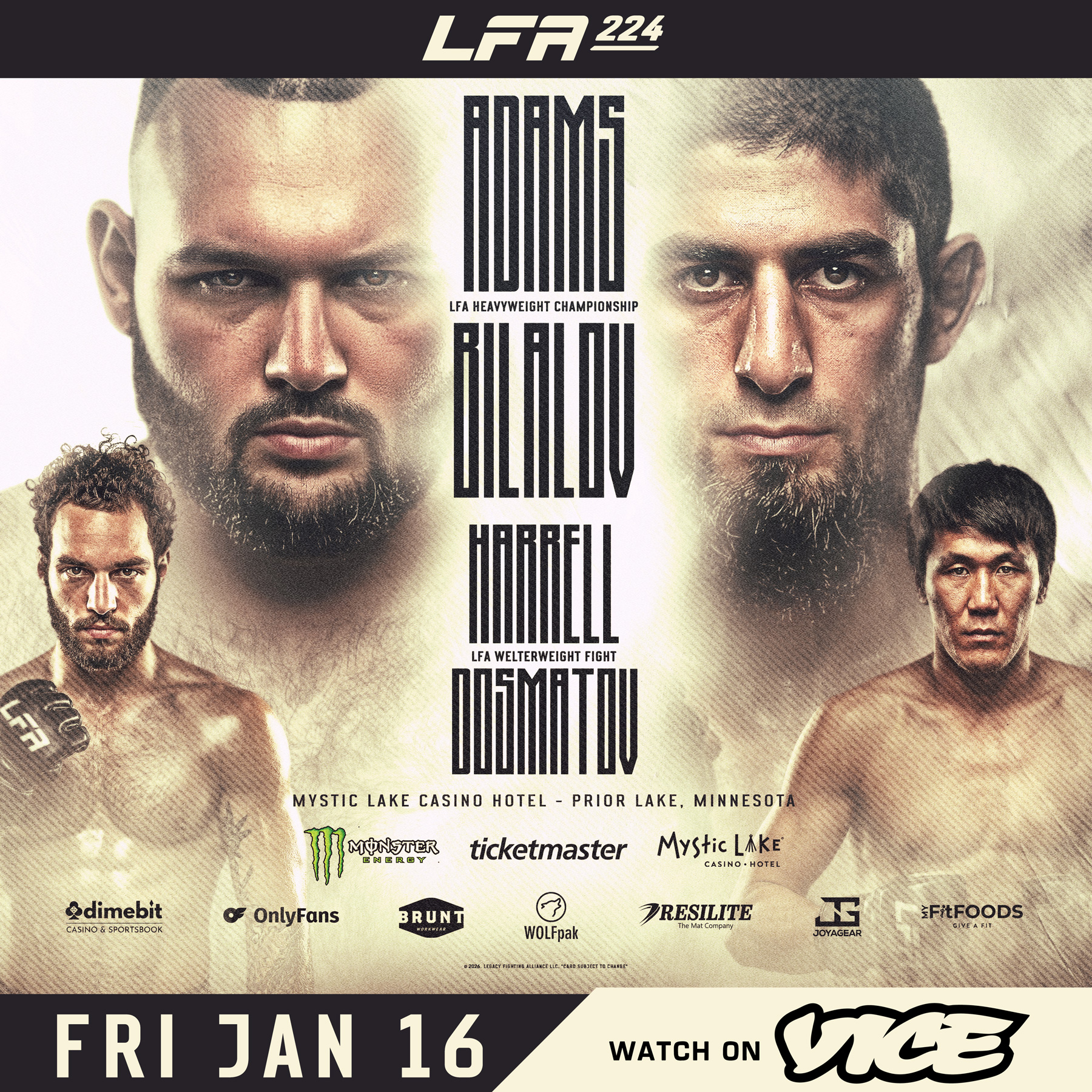 LFA 224, presented by Monster Energy, will crown a new heavyweight champion as undefeated Russian contender Arslan Bilalov (5-0) meets American powerhouse Matt Adams (5-1). Tickets are available now at Ticketmaster.com