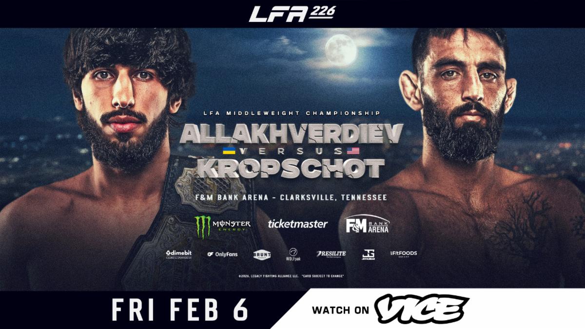 LFA 226: ALLAKHVERDIEV vs. KROPSCHOT, presented by Monster Energy, takes place this Friday, February 6th, 2026 at the F&M Bank Arena in Clarksville, TN.
